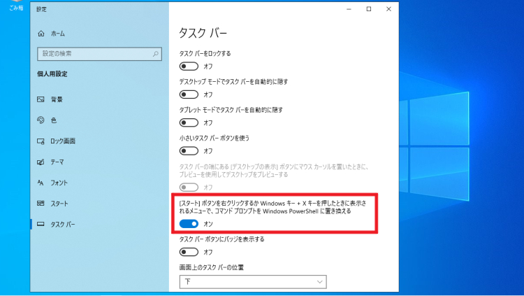 タスクバーの設定