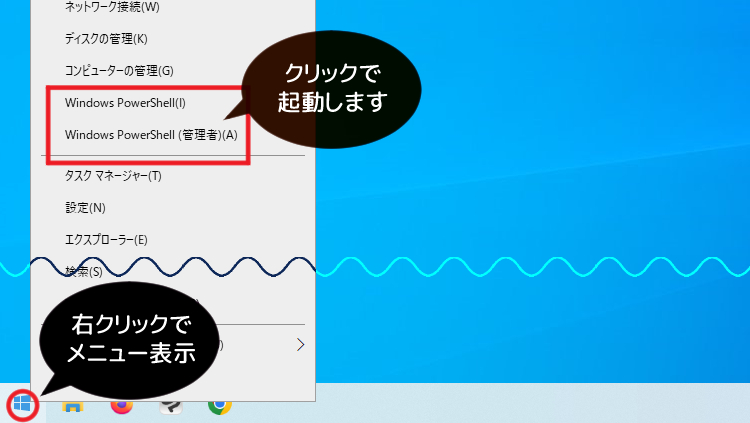 Windowsのアイコンを右クリックすると、メニューにPowerShellの項目が表示されるようになりました。